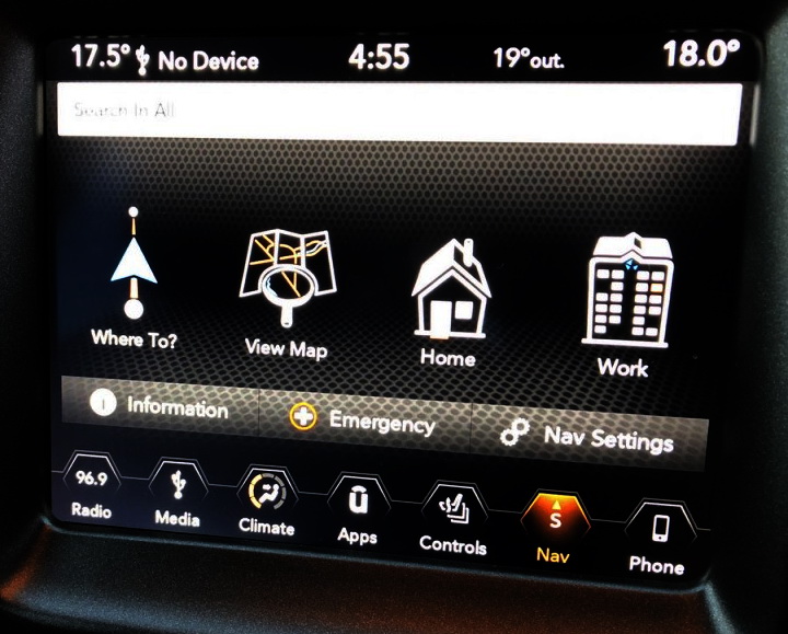 Dodge Uconnect 8.4 VP4R duży dotykowy ekran występujący w rocznikach 2017-2021, obsługiwane modele: